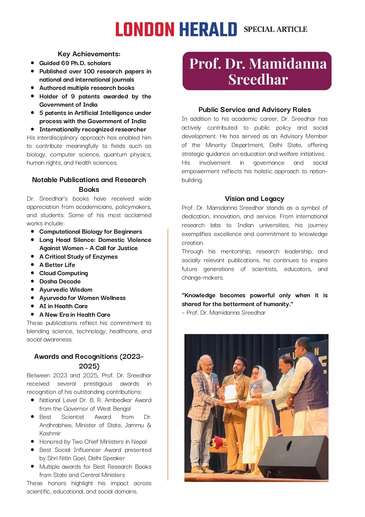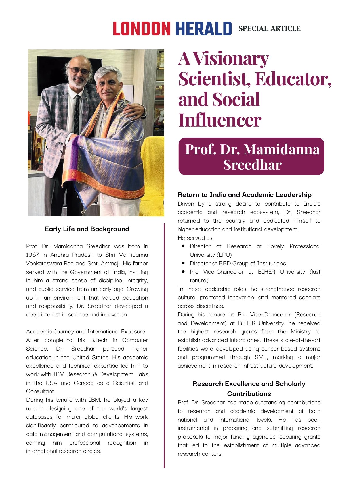 Prof. Dr. Mamidanna Sreedhar